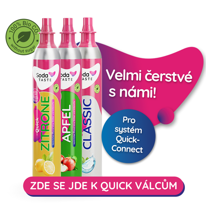 Bubblery s tímto systémem kliknutí jsou však kompatibilní s našimi inovativními rychlými klasickými CO2 válci. Tyto kazety s oxidem uhličitým také zapadají do dua vody, e-duo, terra, art a krystalu 3.0 od Sodastream.