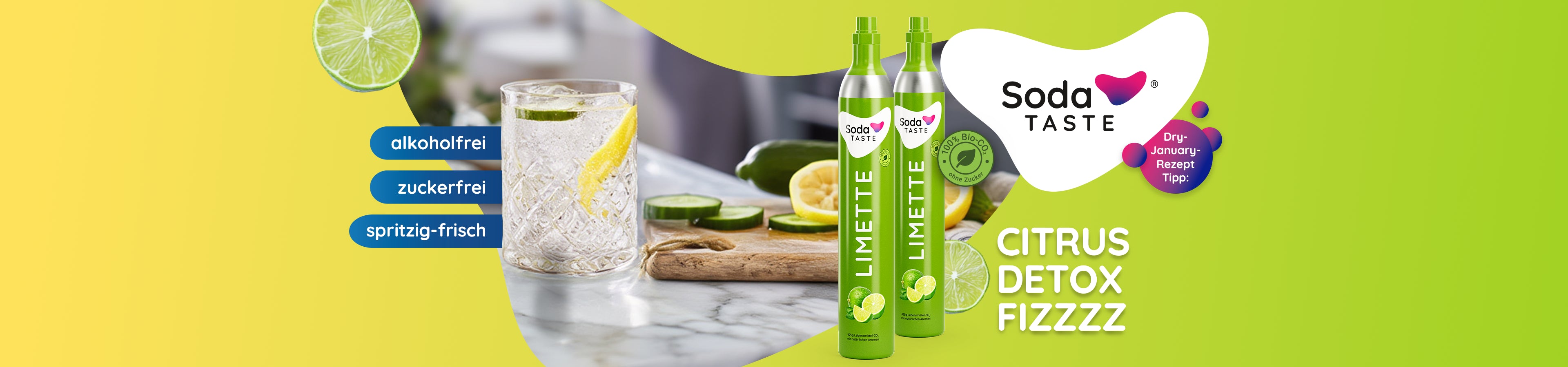 - Gesprudeltes Wasser mit SodaTASTE Limette