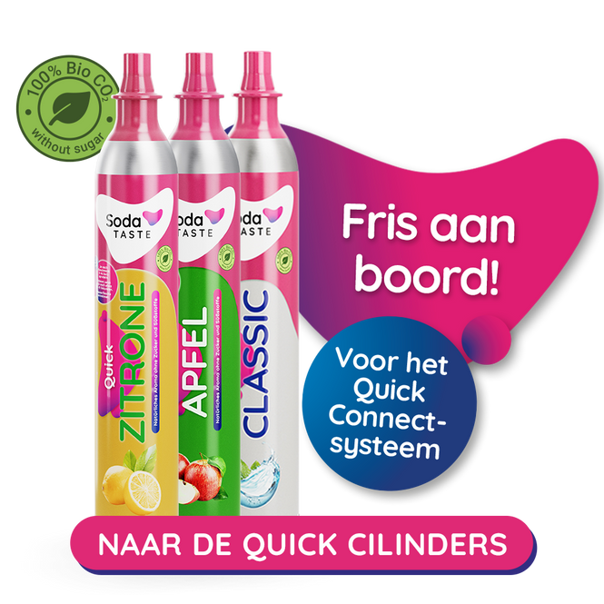 Bruiswatermakers met dit kliksysteem zijn echter wel compatibel met onze innovatieve Quick Classic CO2 flessen. Deze koolzuurpatronen passen ook in de Sodastream Duo, E-Duo, Terra, Art & Crystal 3.0 bruiswatermakers.
