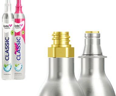 De CO₂ -cilinders van Soda Button worden vervaardigd volgens de Europese standaard ISO 7866 en kunnen daarom worden gebruikt voor alle gewone waterbubblers met een schroefsysteem. Zogenaamde "Quick-Connect Systems" (momenteel duo, Terra, Art & Crystal 3.0 van Sodastream) verschillen hiervan. Vanwege hun verschillende bevestiging kunnen ze geen schroefcilinders gebruiken. Maar ook hier zijn we aan, zodat we binnenkort onze eigen -ontwikkelde cilinders kunnen aanbieden, geschikt voor het Quick Connect -systeem.